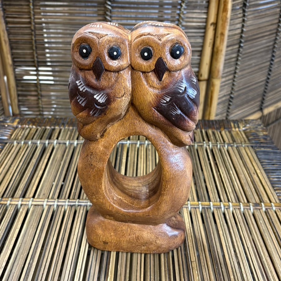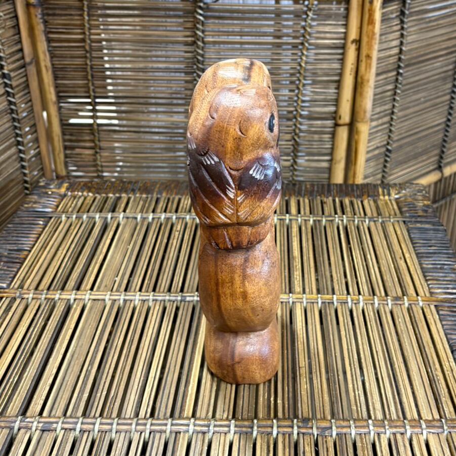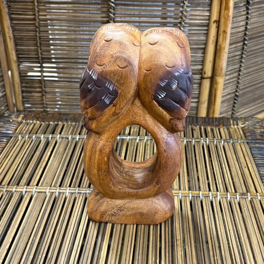 タイ製の手作りの木彫りのフクロウの置物です。 木製のため少し重い商品です。手作りなので、一つ一つ微妙に表情が違います。 【サイズ】 高さ:24㎝ 横:12㎝ 横幅:6㎝ 重さ:740g