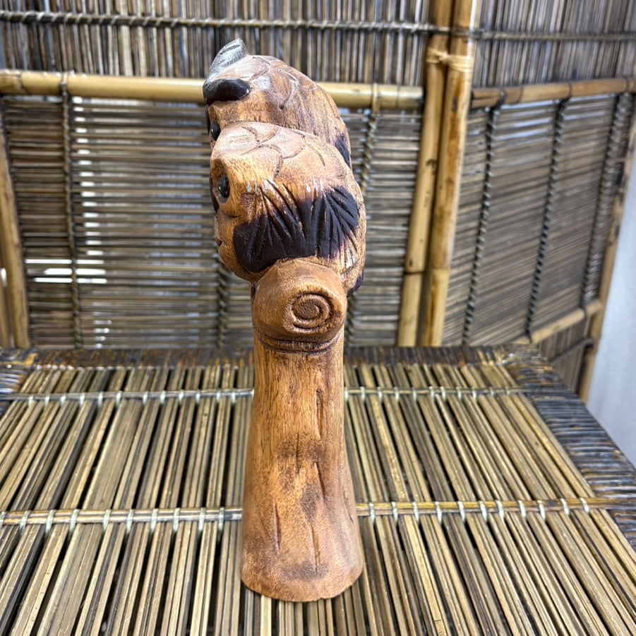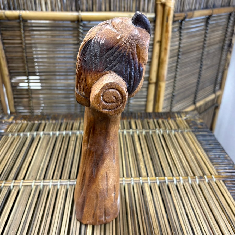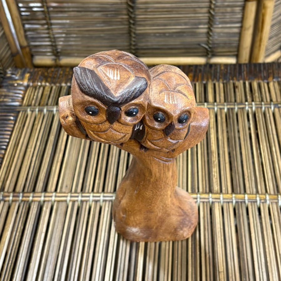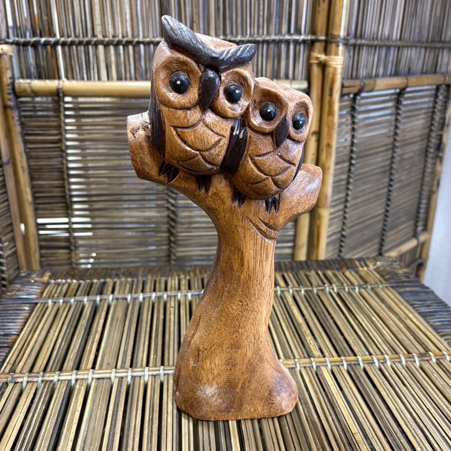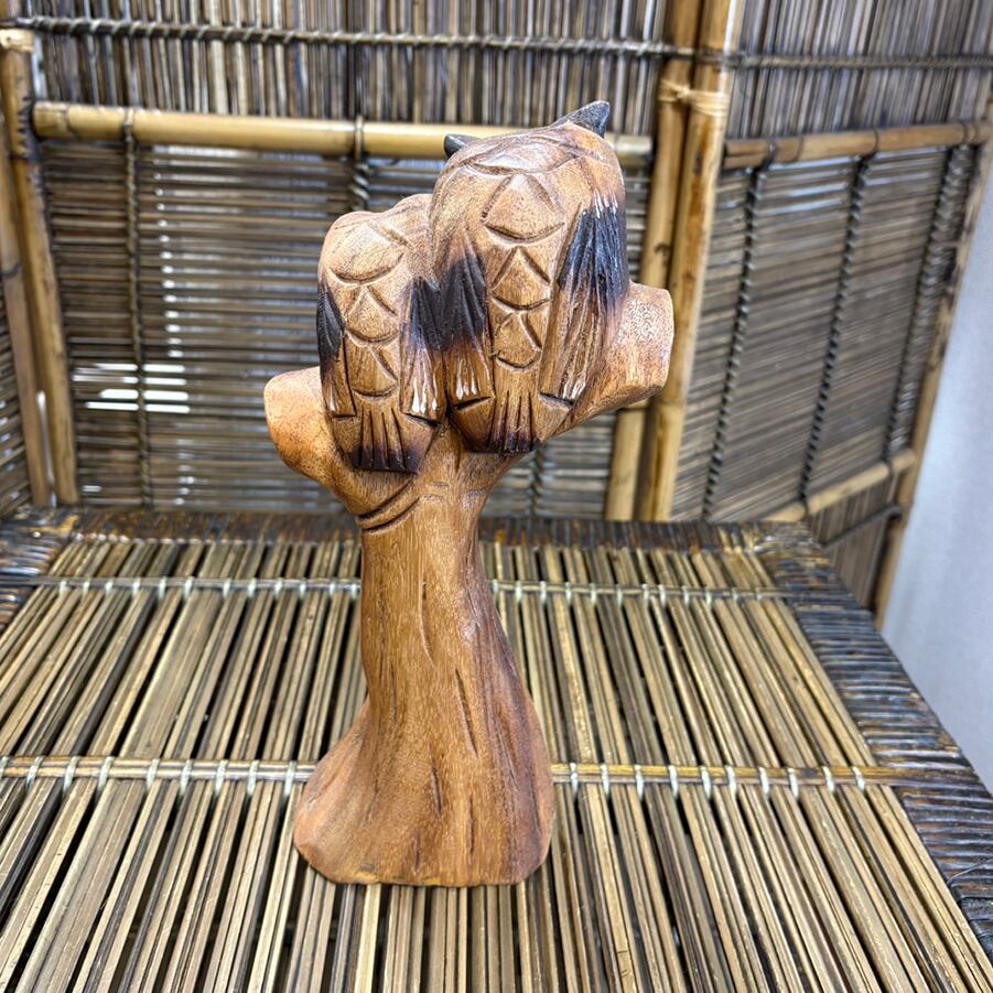 タイ製の手作りの木彫りのフクロウの置物です。 木製のため少し重い商品です。手作りなので、一つ一つ微妙に表情が違います。 【サイズ】 高さ:27.5㎝ 横:12㎝ 横幅:6.5㎝ 重さ:580g